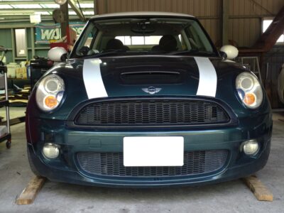 ミニ ミニクーパー R53 スタビライザーブッシュ交換 フロントコントロールアームブッシュ交換 ゴトゴト異音 リアブレーキパッド交換 ロアアームボールジョイント交換