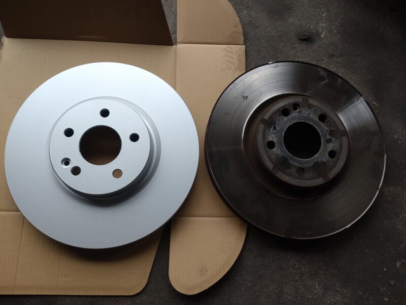 左が新品、右が古いブレーキローターになります。