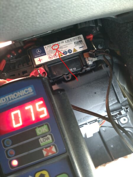 交換前のサブバッテリーをテスターを使いCCAの数値を測定した画像になります。