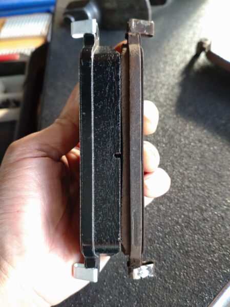 かなり残量が少なくなっており、ブレーキローターに当たるまで数ミリの所でした!