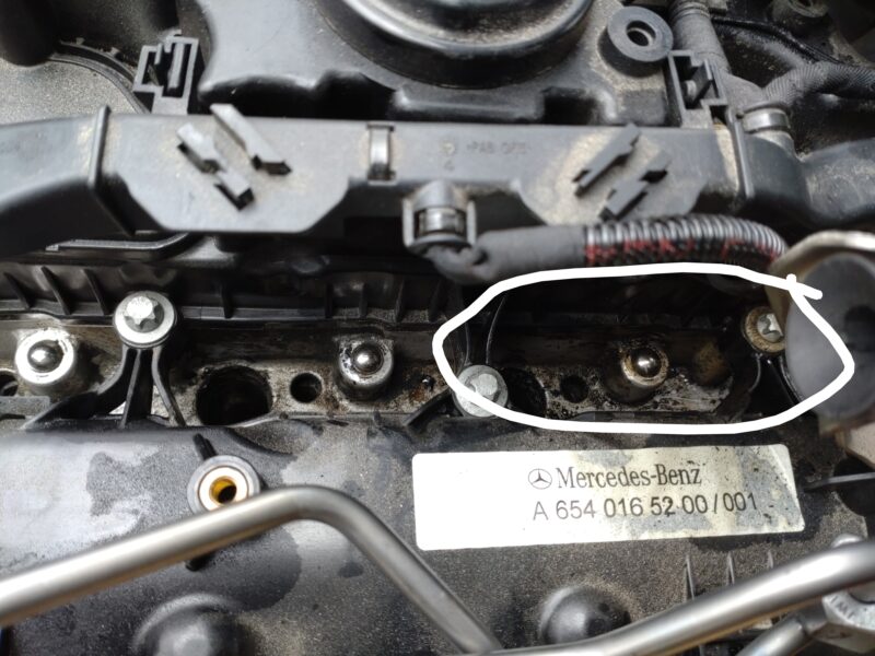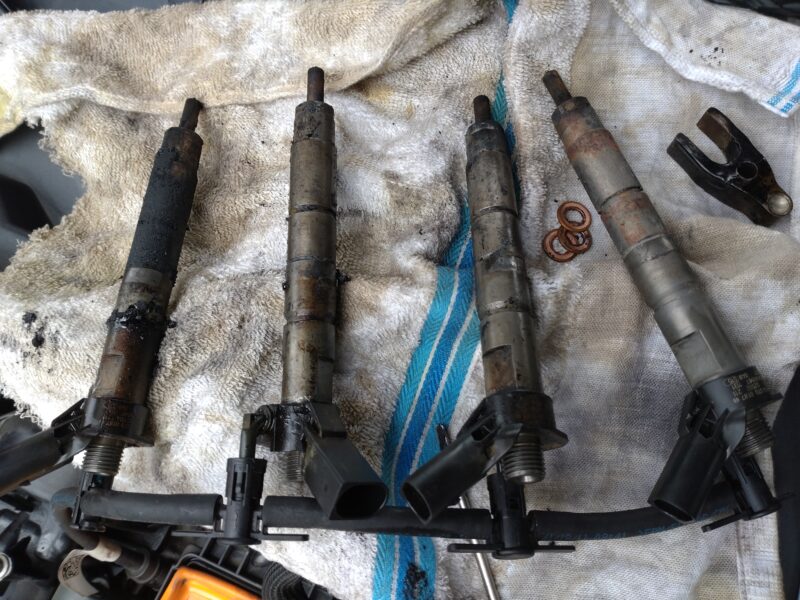 ベンツ W205 Cクラス 220d 排気ガス臭い インジェクターOリング交換 黒光りした汚れ付着